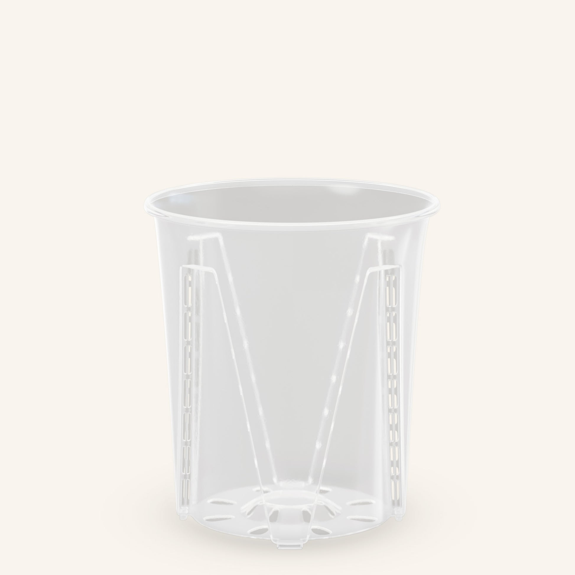Transparent et solide. Tu peux facilement voir les racines pousser et surveiller le niveau d'eau. Fabriqué en plastique PP5 entièrement recyclable. Permet aux racines de respirer.