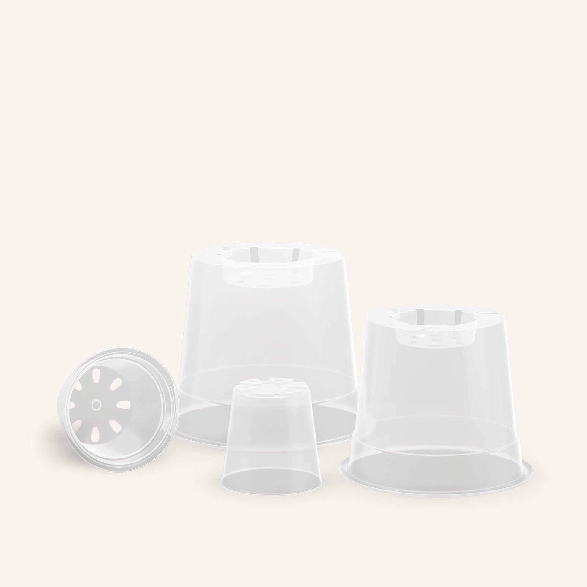 Transparent et solide. Regarde les racines pousser ! Fabriqué en plastique PP5 entièrement recyclable.